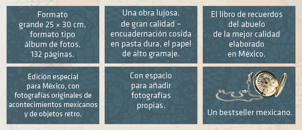 El libro está acompañado de imágenes y fotografías de época que ayudan a evocar recuerdos. En sus páginas también hay espacio para añadir fotografías propias